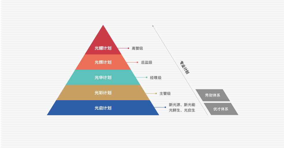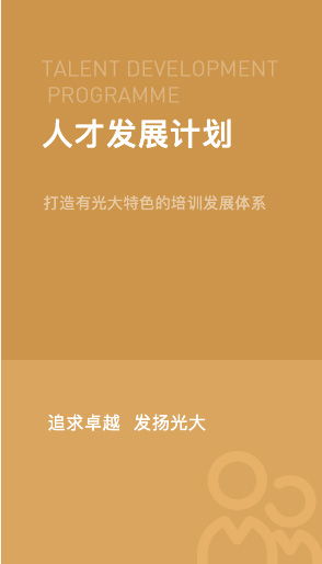 【光彩計劃】引導(dǎo)主管級員工慢慢從“管事”到“理人”的思維轉(zhuǎn)變,培養(yǎng)公司管理人才梯隊,同時強調(diào)貼近業(yè)務(wù)一線,達(dá)到懂業(yè)務(wù),快執(zhí)行,學(xué)管理的三體合一的復(fù)合標(biāo)準(zhǔn)。 -